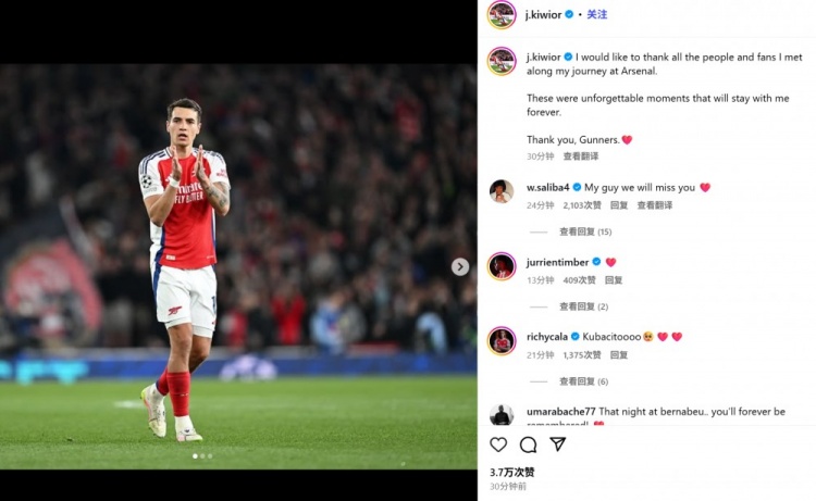 基维奥尔暗示:“我思感谢我在阿森纳的旅程中遭逢的通盘东说念主以及球迷们。这些皆是令东说念主难忘的本领,我将历久谨记于心。谢谢你们,枪手们。”