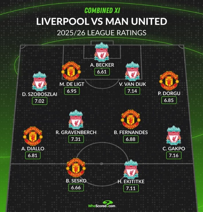 10月19日讯 本轮英超将献艺曼联与利物浦的焦点对决,数据网站Whoscored也盘货了两队球员本赛季英超场均评分最高声势,具体如下: