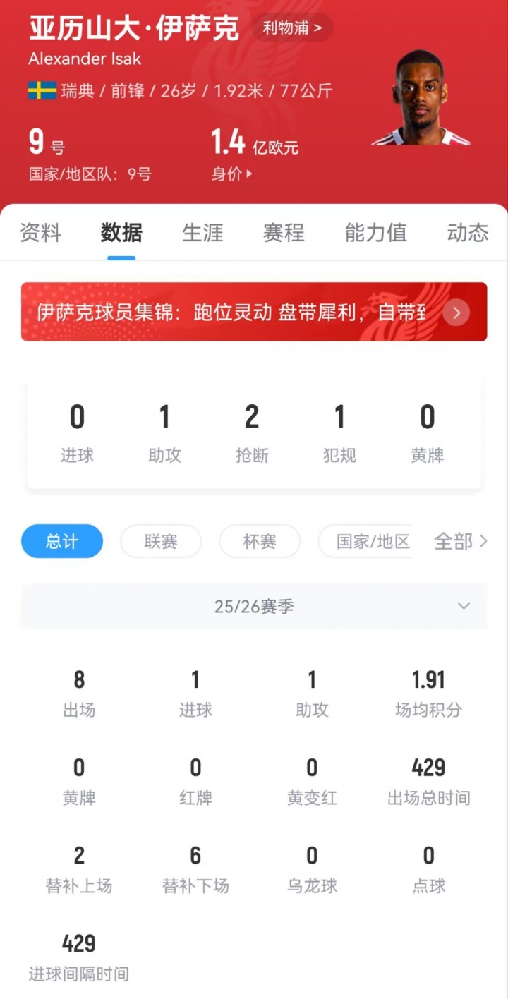 “是以我合计,他仅仅需要找回最好自信,尤其是在利物浦咫尺可能正处于窘境的情况下。我确信伊萨克将成为他们奏凯的一部分。”