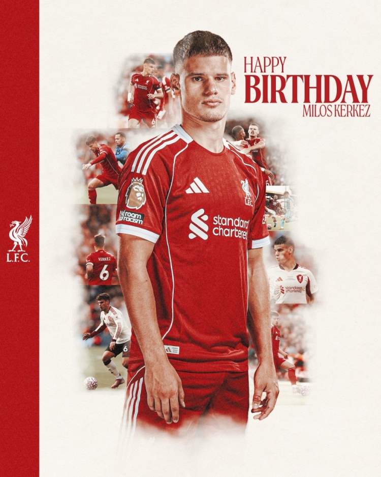 利物浦官方社媒晒出为凯尔凯兹制作的生辰海报,配文:“祝你渡过好意思好的一天,米洛斯。”