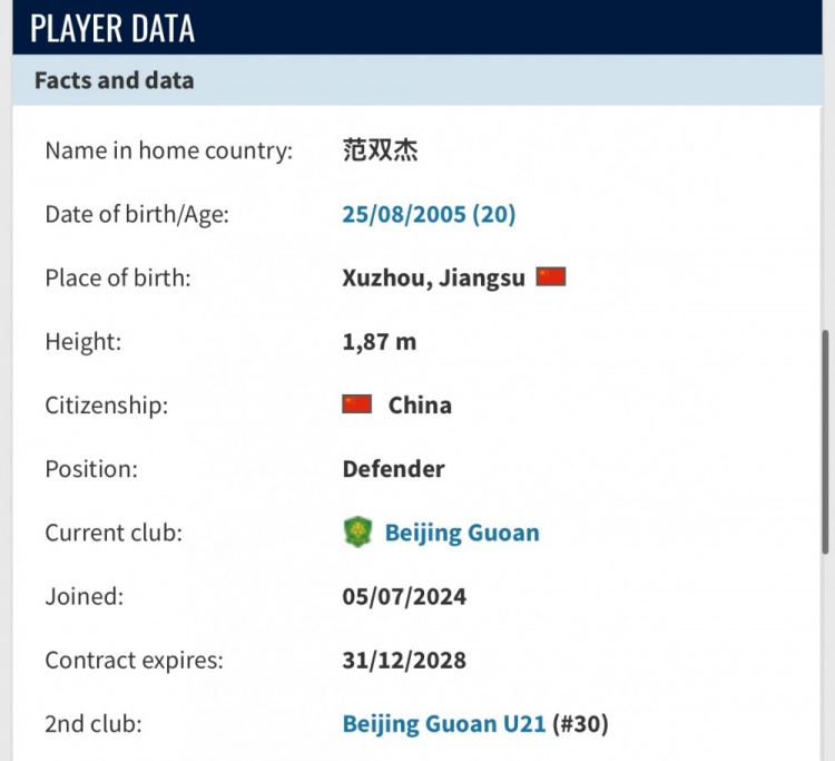 11月18日讯 字据德国转会阛阓网站的音书,国安俱乐部已与范双杰续约两年,条约灵验期至2028年12月31日。