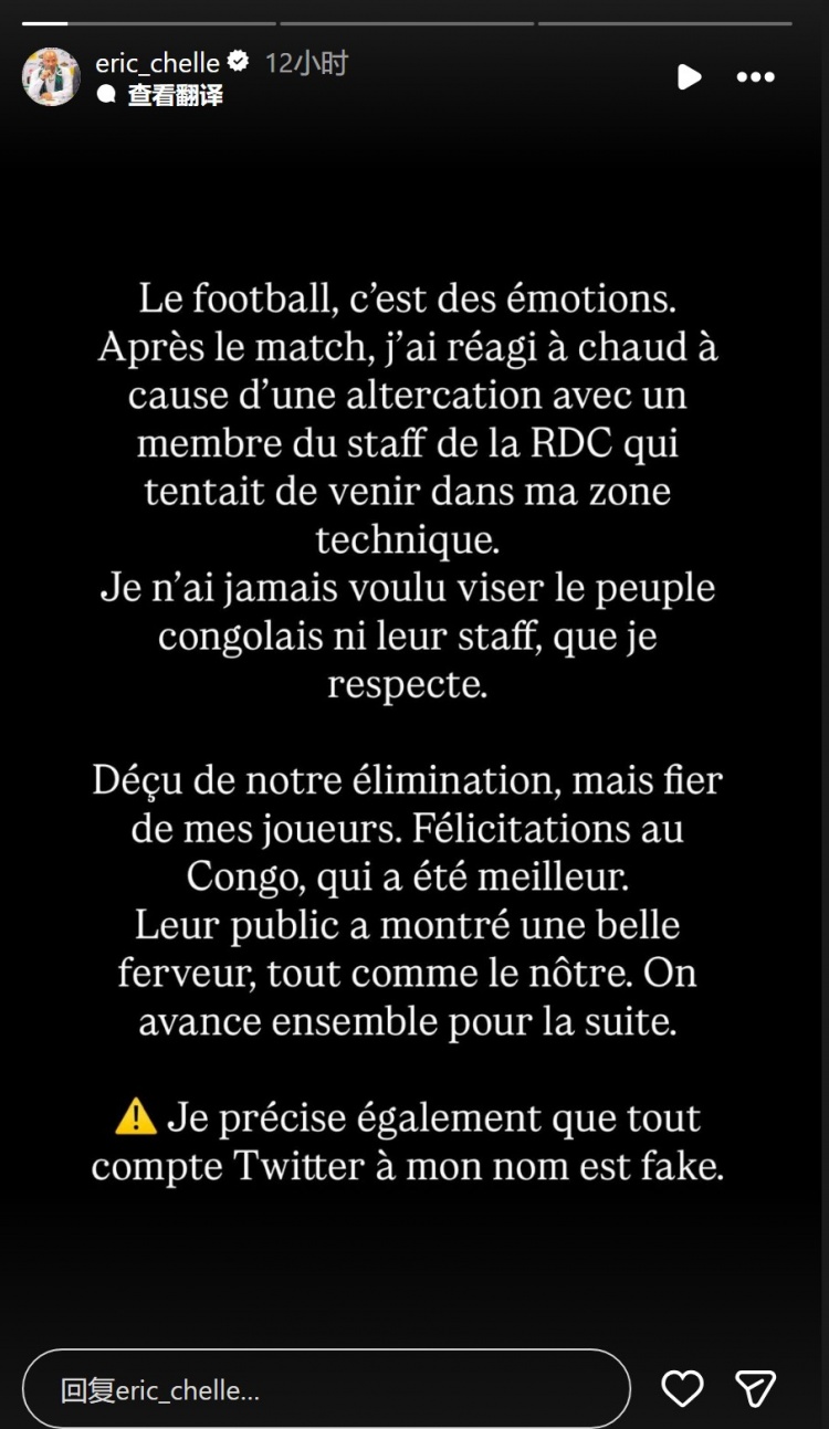 诚然球队出局令我感到失望,但我为我的球员们感到骄矜。祝颂民主刚果,他们判辨更好。他们的球迷展现了极大的善良,咱们的球迷也相通。让咱们一齐上前看,招待将来。