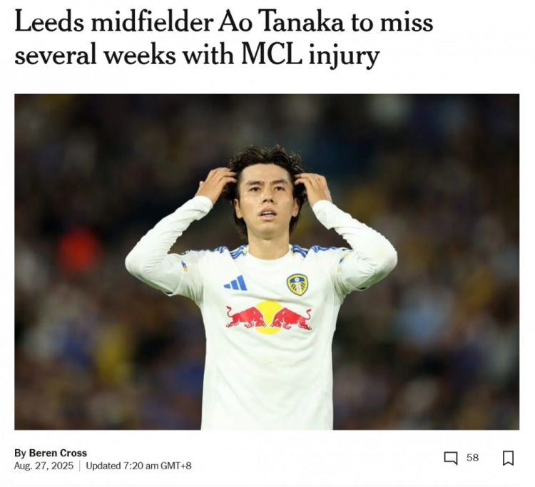 8月28日讯 TA报说念,利兹联中场田中碧因内侧副韧带受伤,将伤缺数周工夫。