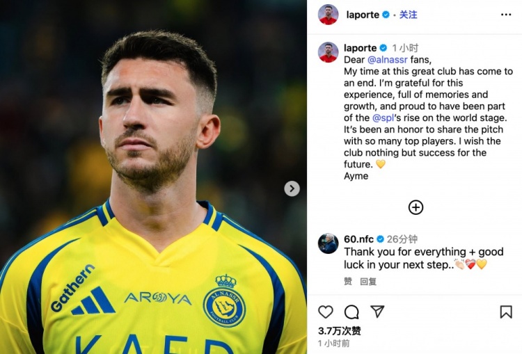 9月12日讯 西班牙中卫拉波尔特行将纪念毕尔巴鄂竞技,他在个东谈主INS上发文,告别利雅得见效,拉波尔特写谈: