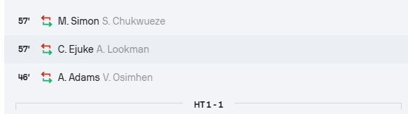 奥斯梅恩因为与敌手相撞,头部受伤,下半场一初始被换下场,循规蹈矩。