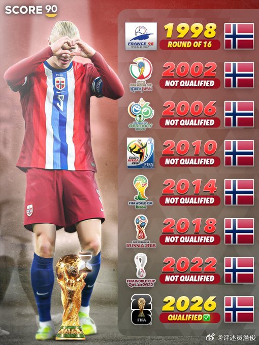 关联词,2006年世界杯后,跟着其他地区足球功绩的迅猛发展,以及北欧足球的式微,他们确乎过期了。老一代球员冉冉离开足坛舞台后,青黄不接成了主要问题。挪威也不例外,这导致他们的收获大幅下滑,整整27年无缘世界杯即是明证。