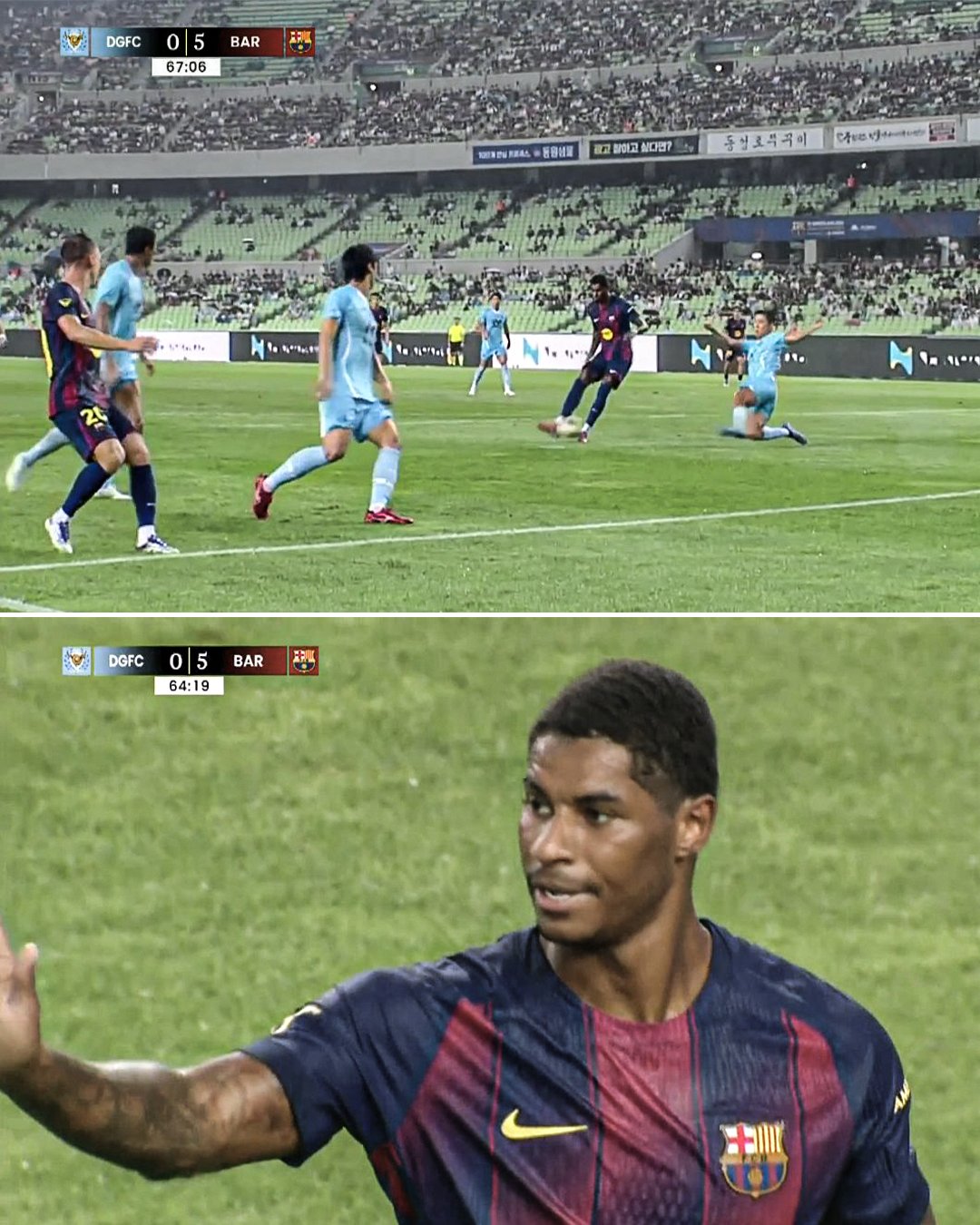 在巴萨5-0大捷韩国大邱的比赛中,打入转会后的第一球。曼联出租到该队的拉什福德担任替补,巴萨上半场由加维梅开二度和莱万多夫斯基进球3-0跨越,拉什福德下半场出场后精雕细镂。