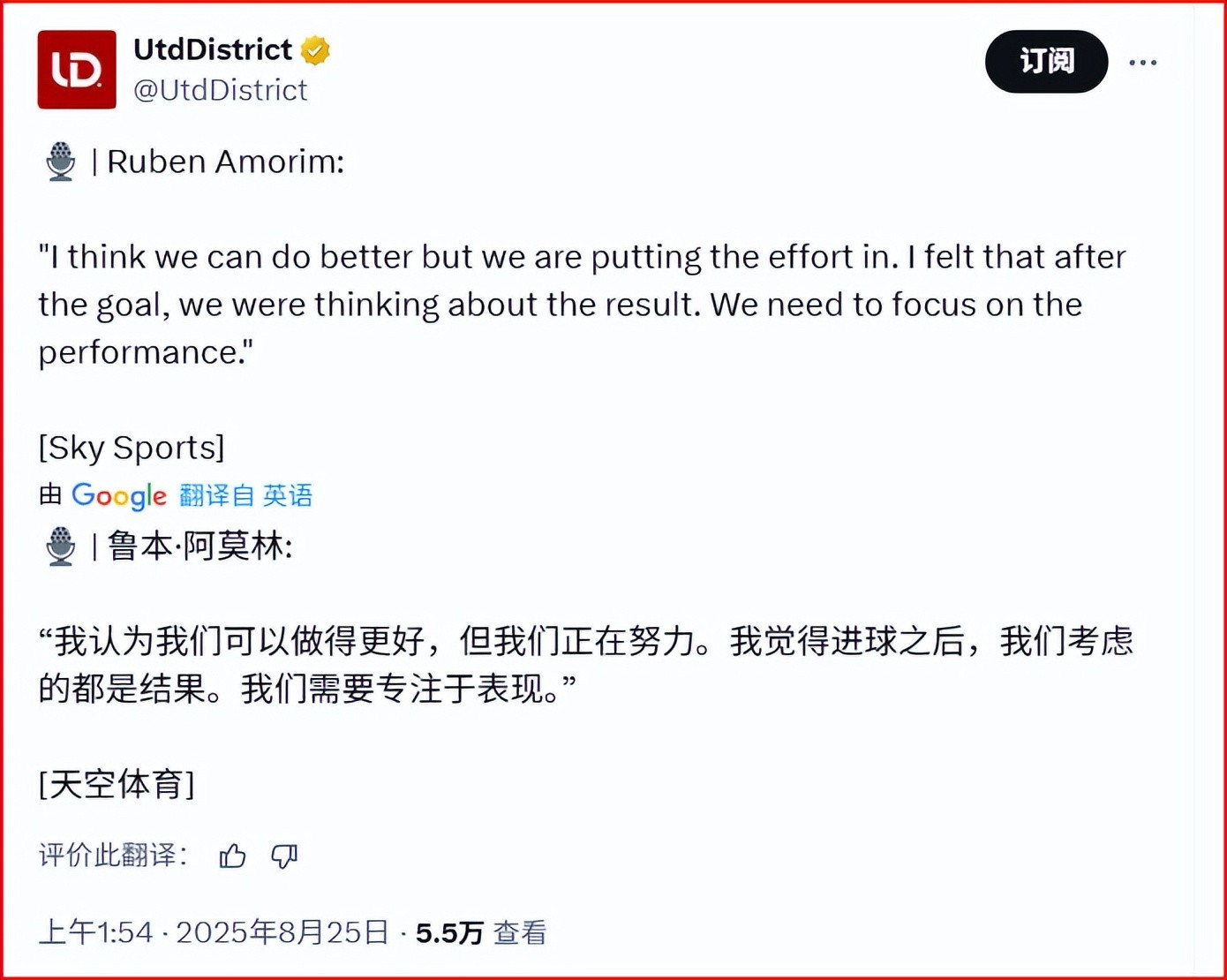 你听判辨了么?曼联球员很弥留,很发怵输球,很发怵上赛季的经由重现,极度是队长B费。是以B费很弥留。那么阿莫林还说了什么?他说:“咱们进球之后,球员们王人忘了策略嘱托了,因为他们王人想着尽快拿下比赛,得到赛季的首胜。”好的,球员进球之后忘乎是以了,想要打进第二球透彻锁定胜局。
