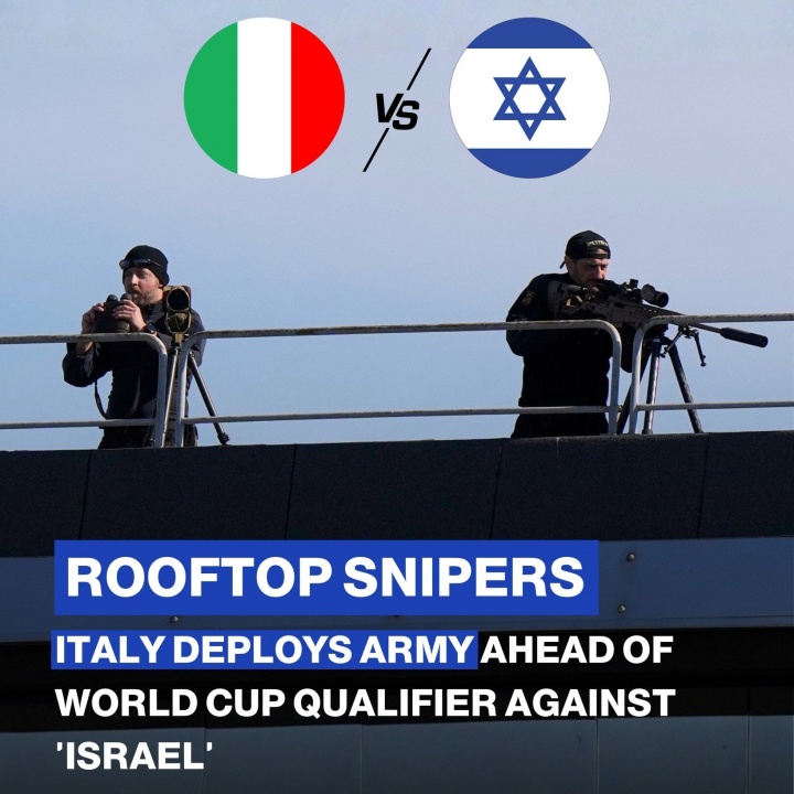 10月15日讯 凌晨欧洲区世初赛,意大利主场3-0慑服以色列。据多家外媒报谈,由于现在巴以的病笃局面,这场比赛被列为了高风险比赛,在以色列下榻的酒店和比赛现场,王人有狙击手防止。