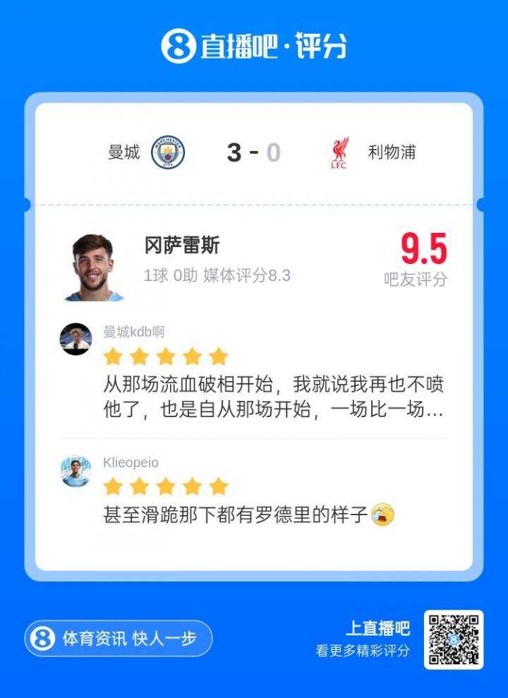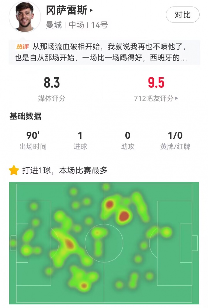 这亦然尼科·冈萨雷斯本赛季为曼城打进的首个进球。近几场比赛,尼科为曼城连场首发,进展亮眼。