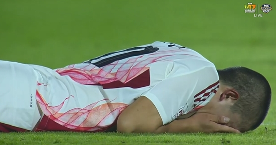 11月21日讯 U17寰宇杯日本0-1不敌奥地利,日本12脚射门未果,赛后日本球员趴在地上迟迟不愿起来,捂着脸。