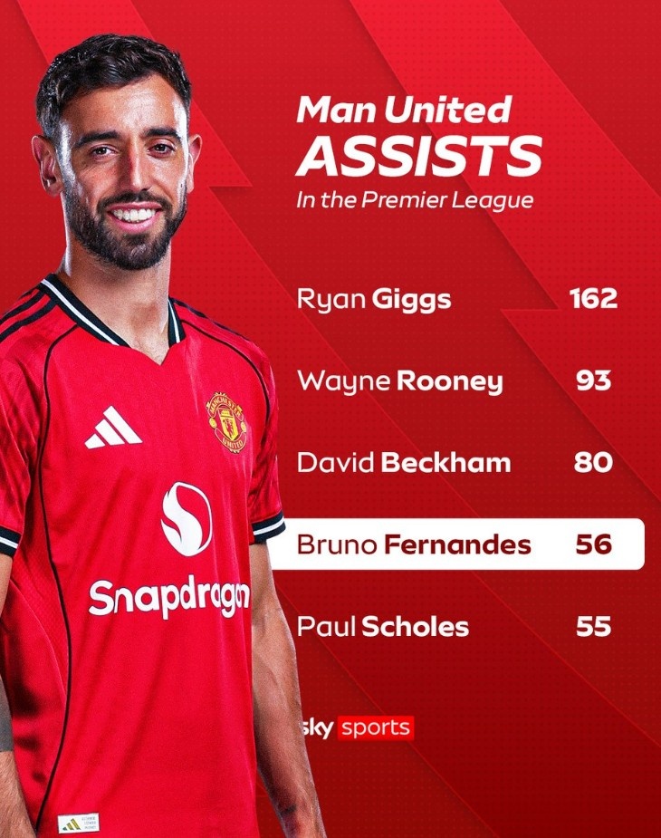 B费曼联活命英超助攻数照旧达到56次,杰出名宿斯科尔斯,以下为曼联队史英超助攻榜: